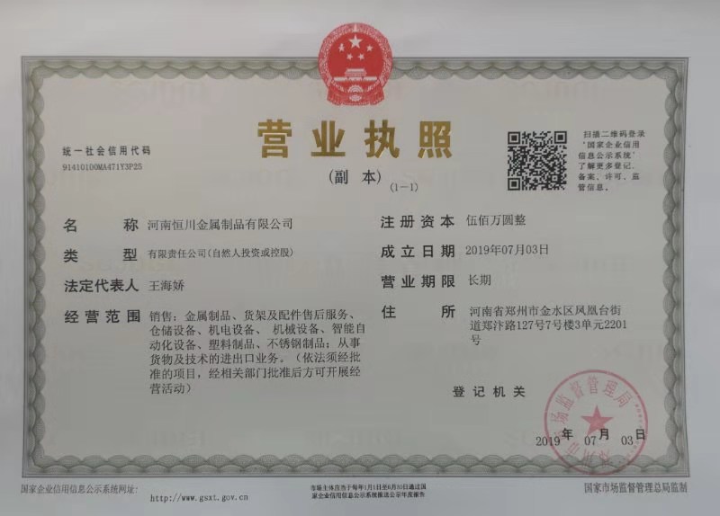 河南恒川金屬制品有限公司(鄭州恒川貨架廠)是國內專業從事倉儲貨架設備、物流輸送系統、超市貨架等的規劃、設計、制造、安裝及咨詢服務。河南恒川貨架秉承傳統、放眼世界,積極引進、吸收先進的物流設備結構形式及設計思路的優點、特點,在物流倉儲設備的技術領域始終占據重要地位。地址位于鄭州市經濟開發區,占地5000余平方米,擁有各類倉儲貨架產品生產設備,從冷熱板卷的縱剪、貨架等各種型材的軋制、貨架得沖切、焊接、靜電粉末噴塑等多條生產線,并具備自動化倉庫專用堆垛機、輸送機的裝配能力,從而形成了一套完整的生產體系。
